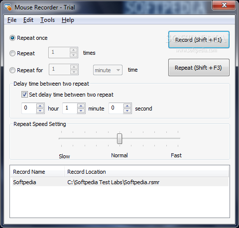 დასახელება: Mouse Recorder ვერსია: 2.2.8.6 მოცულობა: 506 კბ ოპ. სისტემა: Windows All ენა: en-US ლიცენზია: Shareware (მოყვება კრაკი) პროგრამის ავტორი: RobotSoft